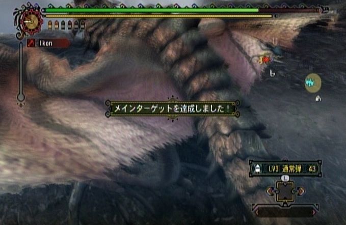 忍ばせていた通常弾と爆弾でなんとか一頭目を50分間際に討伐するも、もう一頭の体力は5~6割は残っている気がする。今のままでは両捕獲すら遥かな地平の向こうといった感じ。