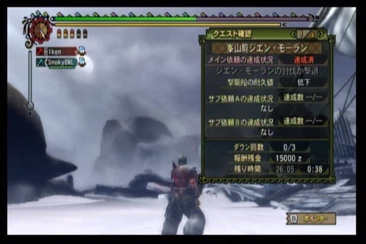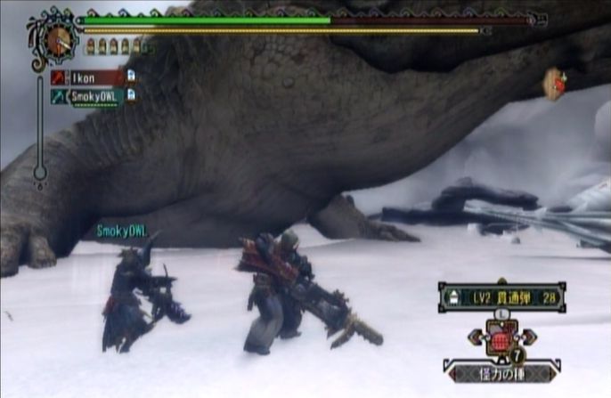 相方オウルは滅龍速射・氷結の属性を軸に組み込んだスロゥハンド、私イコンは黒嶺鯨砲をディアーカバレルに換装した貫通仕様で挑みますが、数々の撃退やときには撃龍船を破壊されるなど、あまり芳しい結果には至っておらず。