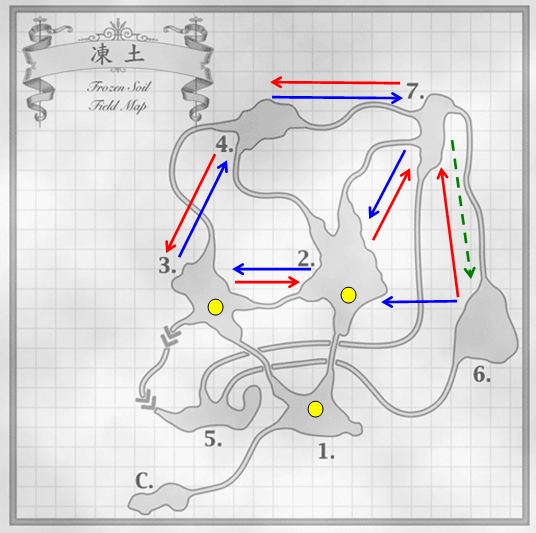 ベリオロスの移動パターンは二通りがある。一つは雪原のエリア2→3→4→7を一つの円とした時計回り(以下、正とする)と同じように2←3←4←7を一つの円とした反時計回り(以下、反とする)の二つだ。未発覚時であろうと発覚時であろうと、その周回は基本的に変わらない。