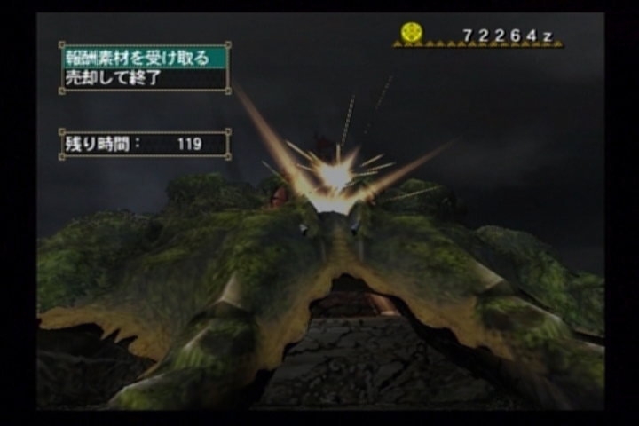 長丁場で非常に疲労のたまるクエストですが、やっぱり討伐の瞬間に得られるカタルシスこそがMHソロの一番の楽しみです。しんどいのだけれど、クリアできたときの快感はもうたまんない。そこに至るまでの試行錯誤も楽しいんだけれど、それが結果として出るから単純に面白いのだろうなー、ソロって。